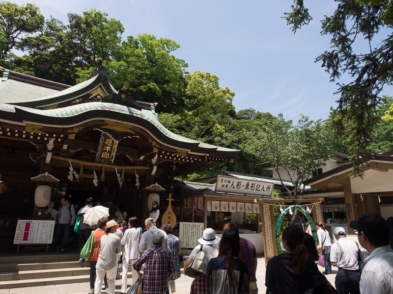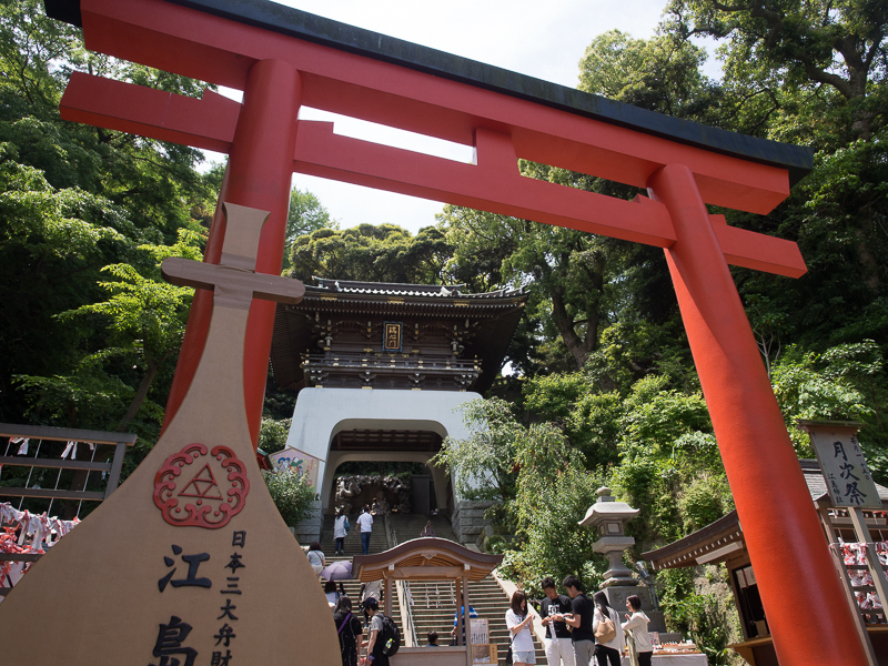 江之島神社的正門。江之島神社佔了整個島差不多一半的面積,實際上是由三個姊妹神的神社组成的。