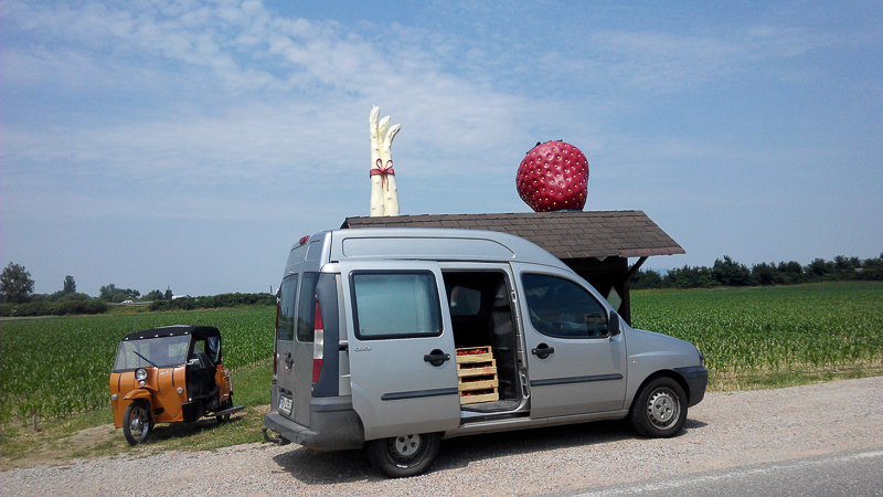 騎車的途中傳來一陣士多啤梨的味道,經過一片士多啤梨田,前面有個地方可以買到剛摘下的士多啤梨。