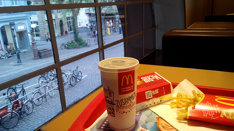 這裏麥當勞比意大利又便宜了,而且價格標的都是加大餐,標準的話還會更便宜。