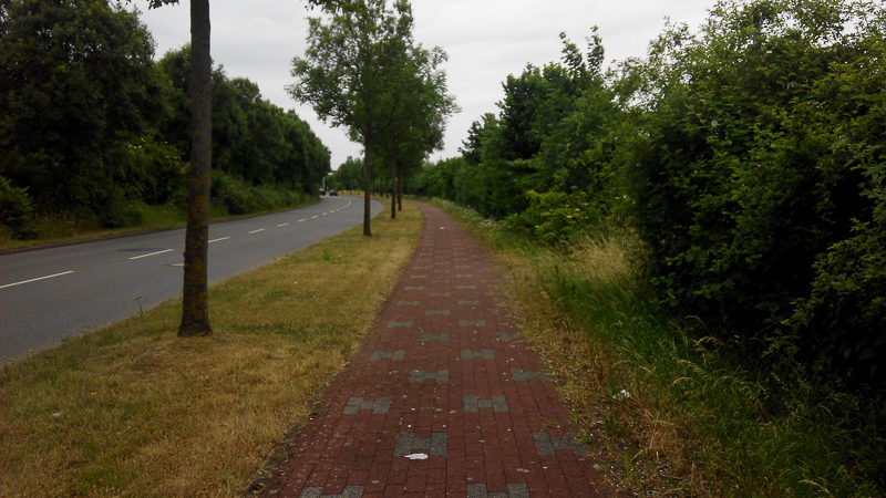 這就是傳說中荷蘭的單車徑。單車徑比馬路還多,而且一定是雙向行駛,根本把馬路和單車徑當成同一種東西了。