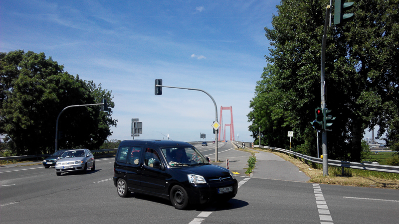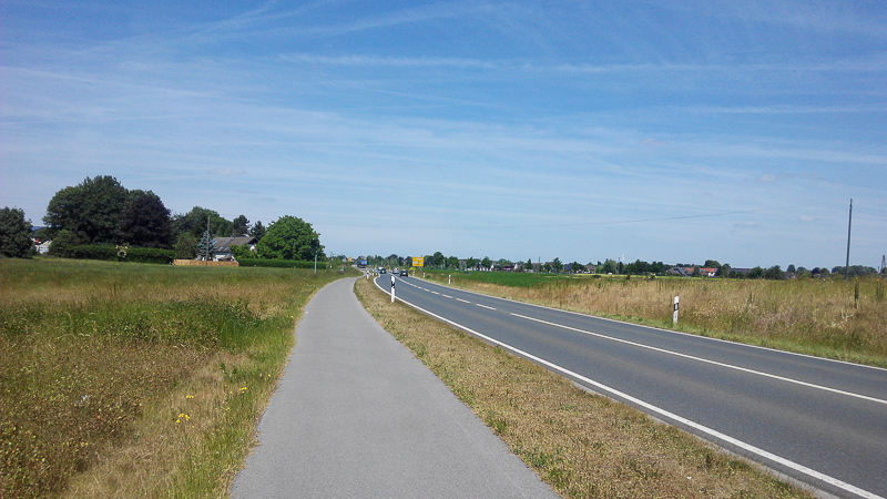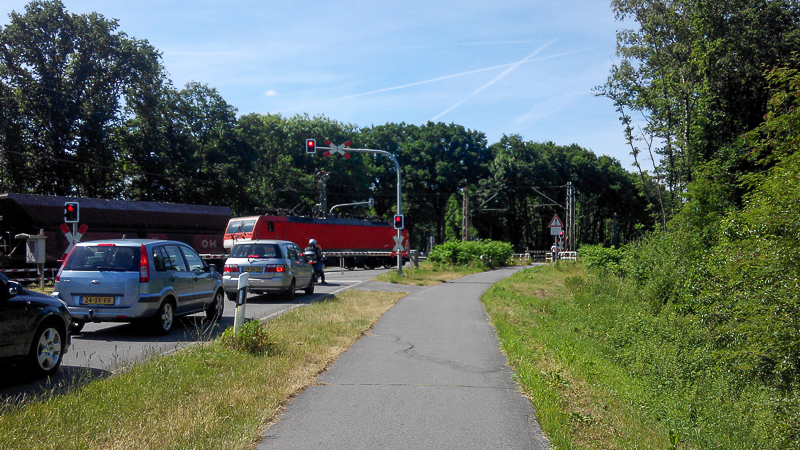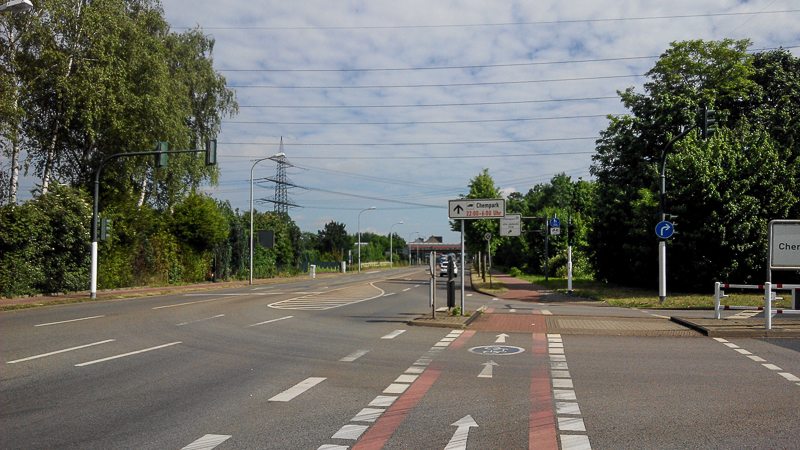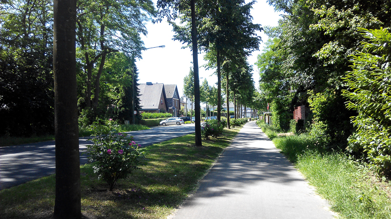 過橋後離開德國最後一個大城市。昨天走過的通道。今天的天氣烏雲密佈,但天氣預報今天不會下雨,至少放心一點。