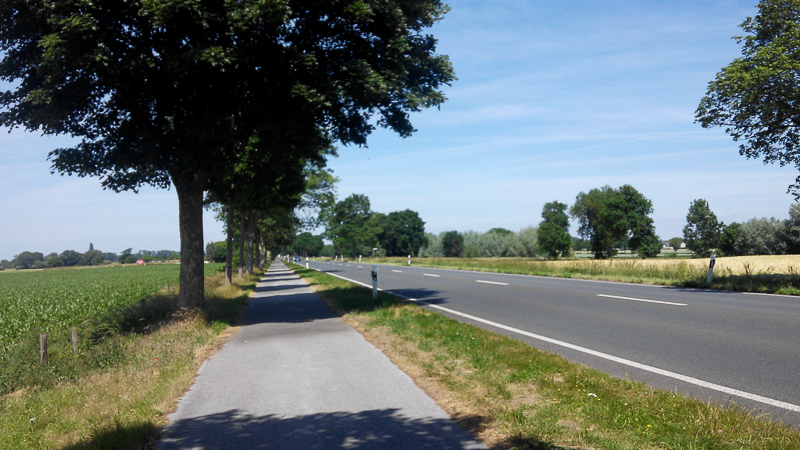 看地圖的時候,今天在中間會經過名叫Xanten的城鎮,一路再騎下去會離開萊茵河,然後再騎三十公里到荷蘭的青年旅舍。