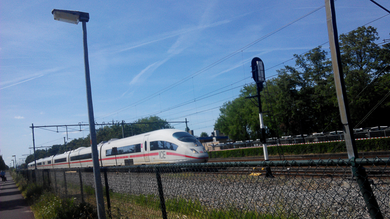 剛好有火車進站。這是從德國法蘭克福出發的ICE,大約只要兩小時就到這裏了。騎單車花了我五天啊。