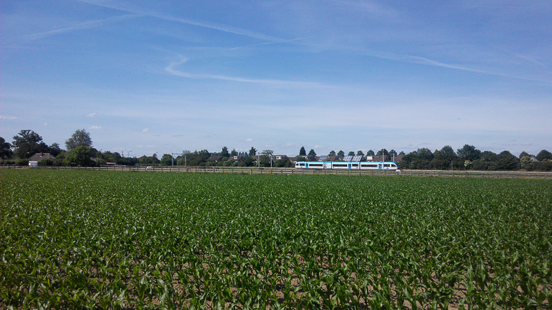 還有本地的火車。德國是紅色,荷蘭是藍色的。