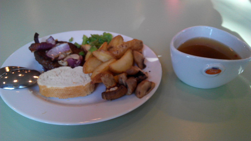 身上的食物已經全部吃光,所以上路前必須把肚子填飽。早餐在八點開始供應,都是麵包、火腿和粟米片。吃得不能再飽後,在8點半出發。
