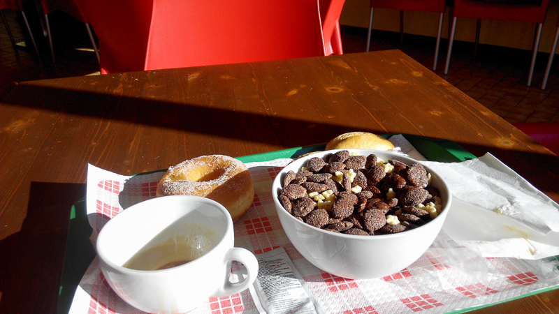 早餐只給一個麵包,但栗米片類的卻可以隨便吃,所以就裝了一大碗滿的。
