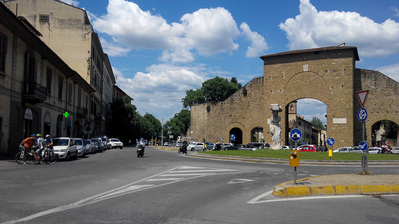 再前進十公里,開始進入佛羅倫斯。入城的路車多又窄,抄了小路避開,又多花了時間。到城外可以看到古時留下的城牆。