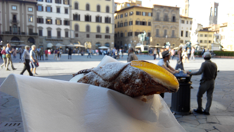 走得有點累了,買了個意大利甜品坐下來吃。這黃色的應該是柑,這到底是什麼呀?對我來說食物是甜的就可以了。這也是我旅行時的遺憾,若是我有關於這方面的知識,旅途可以更加有趣。