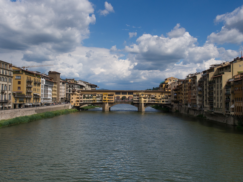 到領主廣場的路説遠又不遠,説近又不近,只是過河的橋也有三條。走到河邊,可以看到遠處廣場的高㙮,只要向著那裏走,就一定不會迷路了。那邊的風景看來比較好,就在中間的聖三一橋(Ponte Santa Trinità)走過去。
