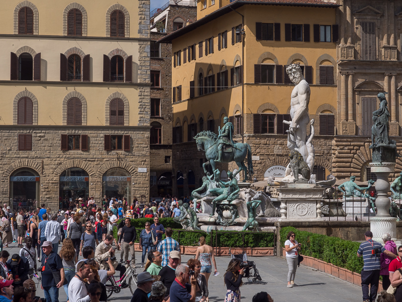 在旅舍洗過熱水澡後,可以舒舒服服地前往觀光。在接待處拿了一份觀光地圖,再來決定第一個目的地。阿諾河(Arno)分隔了旅舍與市中心,過河後可以沿著河邊走,或是沿著橫街窄巷走。因為比較近河邊,先前往領主廣場 (Piazza della Signoria,再到大教堂去。