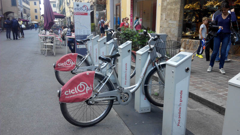 在其他地方大受歡迎的城市單車,比薩可以說是現代化市鎮的模範, 不但有共享單車,大多數地方都有免費wi-fi,但是這地方100年後還可以保持得一模一樣。古典的外觀,現代化的內涵。