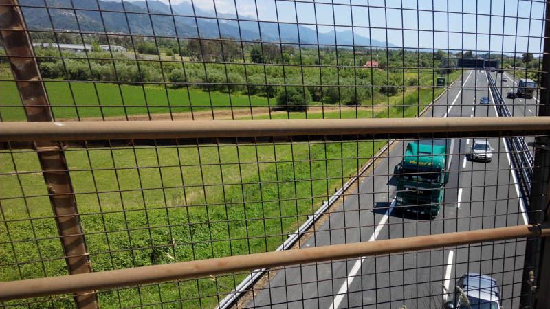 再出發。經過高速公路。