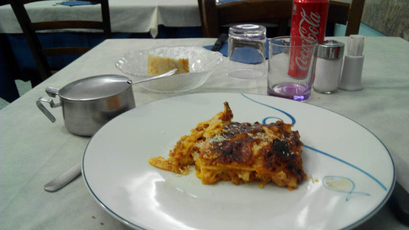 闊條麵,裏面沒有肉, 但外面有一層軟軟的芝士。一般意大利菜,先上便麵條再上主菜。我還是忍不住終於喝了可樂,真的如我所料,實在是太爽了。 難怪在第二次世界大戰的時候,美軍會給立下軍功的人送可樂作為獎勵,汽水蓋就等於是勳章一樣,這並不是開玩笑的。