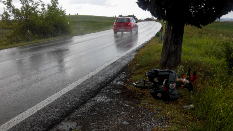 上坡、看風景丶下坡。在意大利騎車不斷重複的三拍子。