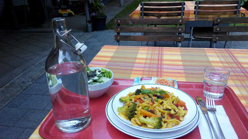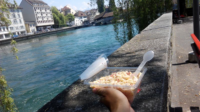 結果在另一家coop超市買了汽水,三文冶和通粉。這樣已經花了10法朗了。找個地方吃午飯。