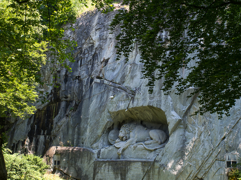 垂死獅子像,為了記念法國大革命中為了保護法國王室而死的僱傭兵。在中世紀時瑞士並不富裕,成為傭兵就是大部分瑞士人的收入來源。有道是窮山惡水出惡人,當時瑞士傭兵以勇猛見稱,在民藝復興時期開始已是各國爭相僱用的對象。