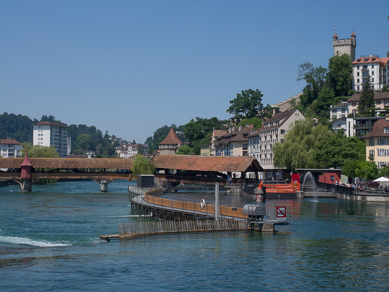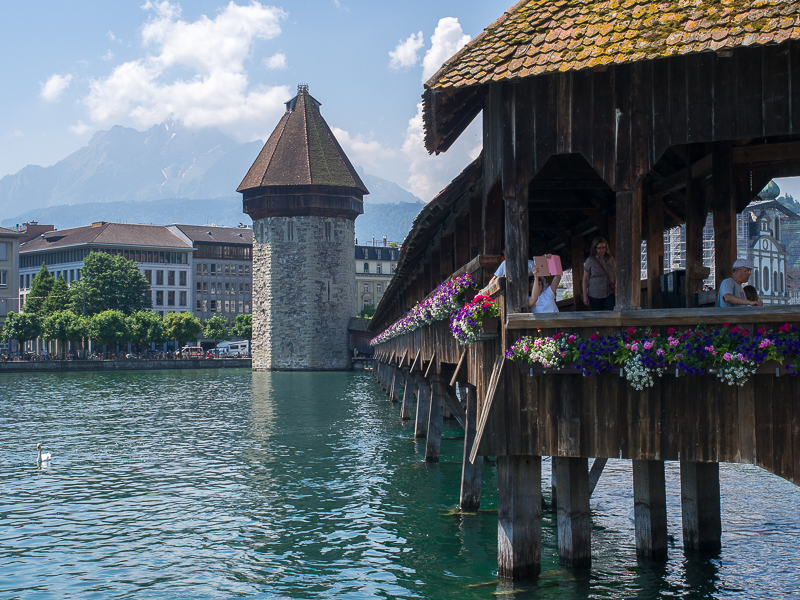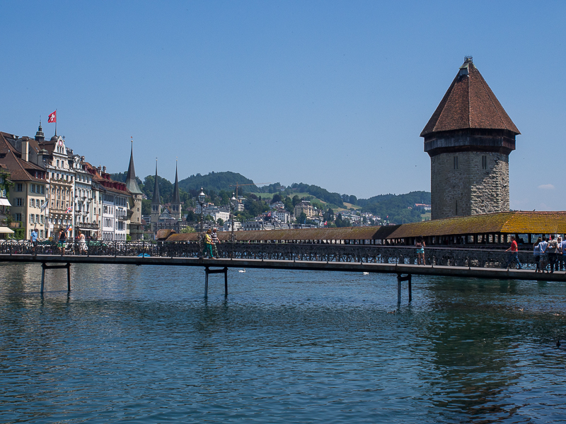 說到琉森的地標,就是這條佩爾廊橋,德語是Kapellbrücke,直譯就是教堂橋(Chapel bridge),據說是歐洲現存最古老的木橋。因為已經到了德語區,連名字也是德文了。