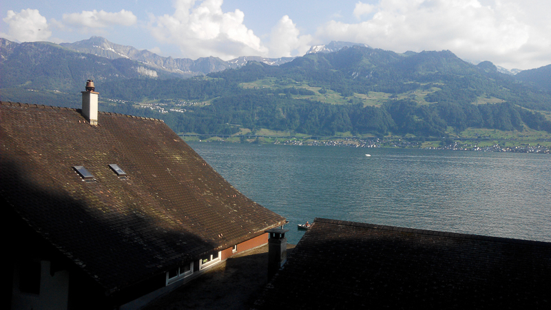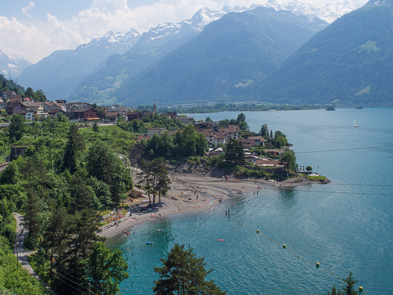 今天的青旅在琉森湖邊。本以為上坡後一整段的下坡不費勁的,就安排了差不多100公里的路程,這是笨蛋啊。